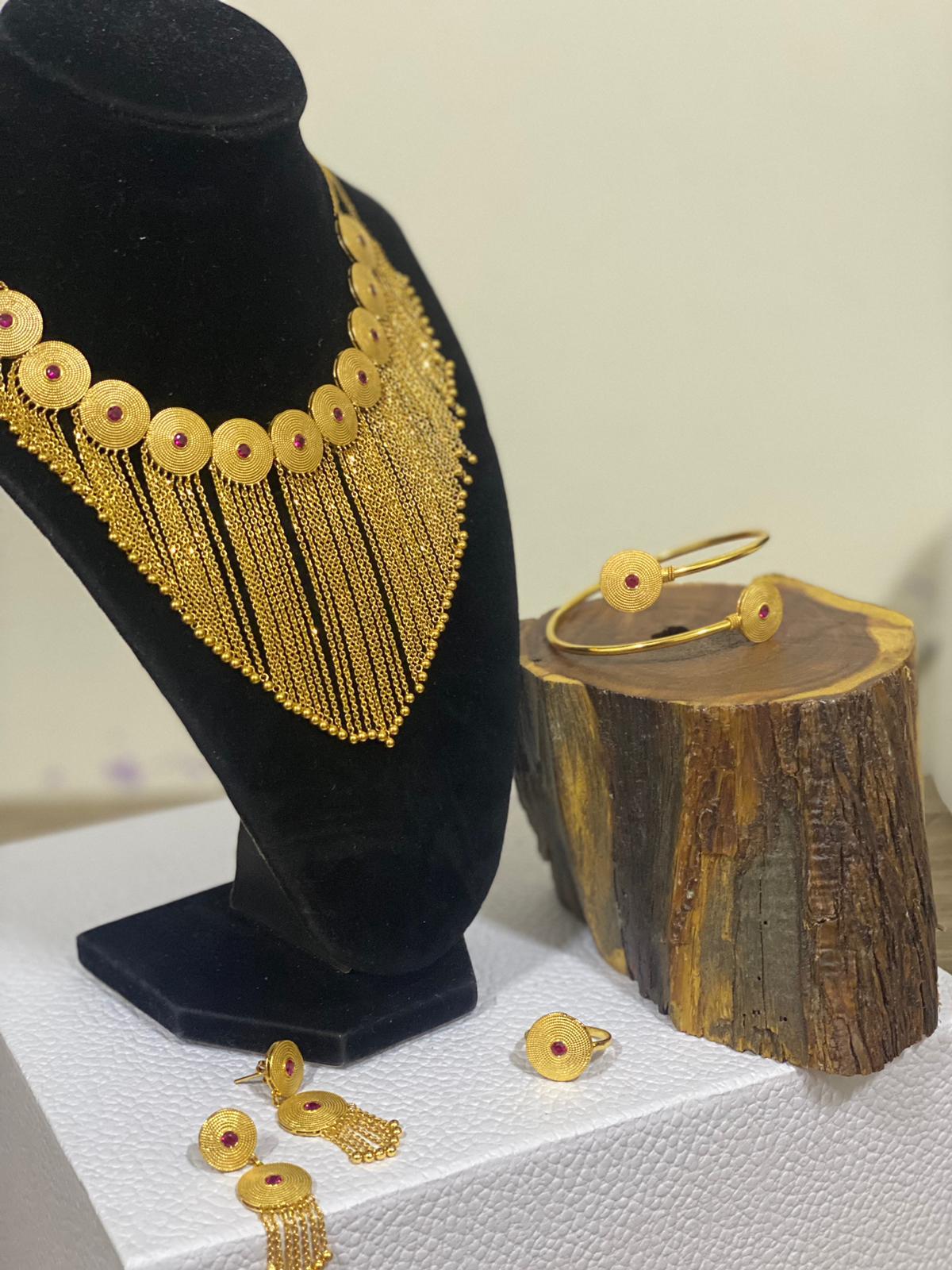 طقم المزنط، تصميم خاص بشريفة الدوسري. تصميم ظاهر وكثيف لا يمكن تجاهله يثير اعجاب كل من يراه